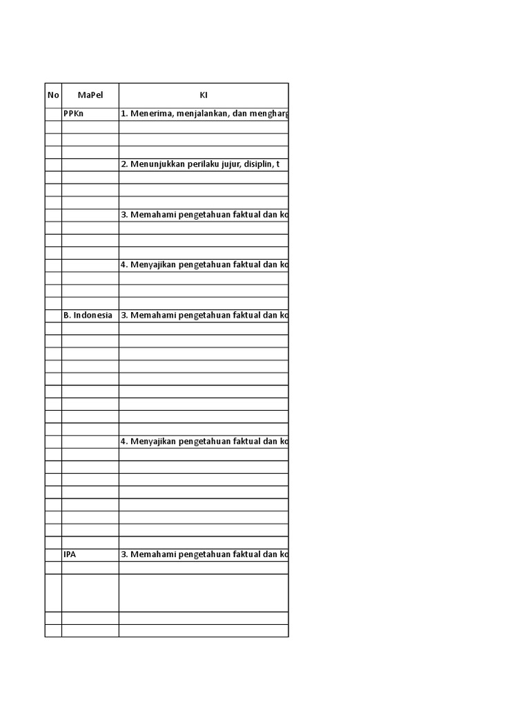 14 89 4 89 4 Pemetaan kd kelas 5 semester 2.doc, unduh file. Pemetaan kompetensi dasar kelas 4 sd/mi k13. Untuk pemetaan kd kelas 3 semester 1 kurikulum 2013 revisi 2018 kita harus tahu muatan pelajaran atau mata pelajaran apa saja yang tergabung di dalamnya. Kompetensi dasar merupakan konten atau kompetensi yang terdiri atas sikap, pengetahuan, dan keterampilan yang bersumber pada.